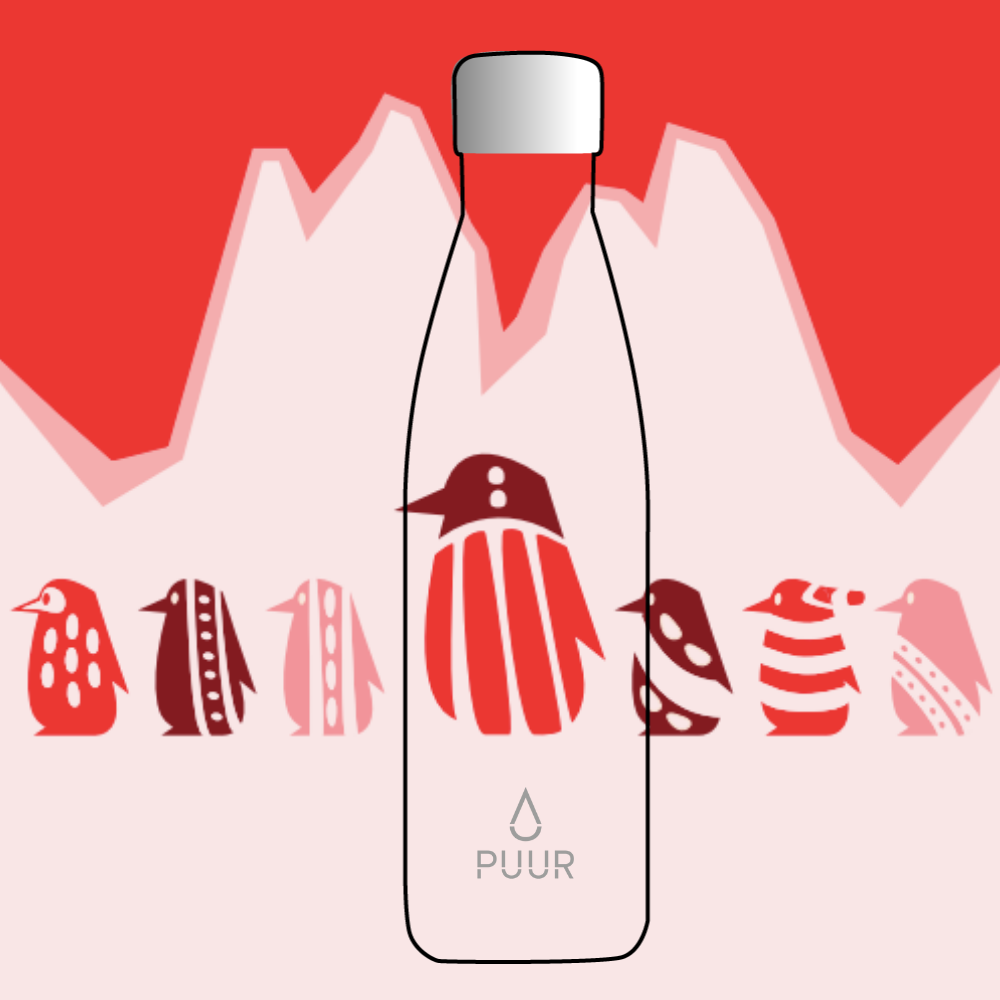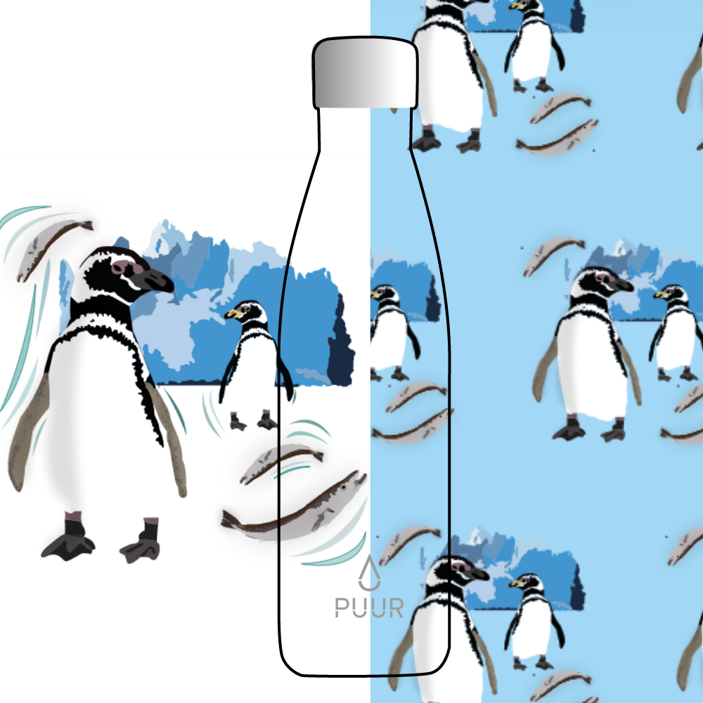 El proyecto se enfoca en el diseño de una botella inspirada en la zona austral de Chile, resaltando el impacto del derretimiento del glaciar de Magallanes en los pingüinos y su alimentación.