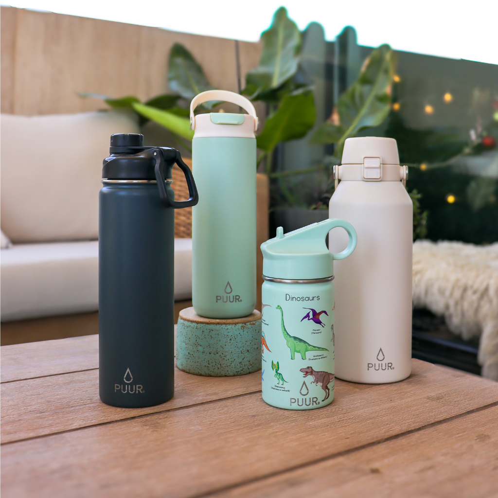 Nuestras botella activas PUUR puedes encontrarlas en estas distintas capacidades: 350 ml, 600 ml, 660ml y 1000ml.